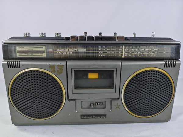 • Antigo rádio gravador vintage Panasonic RX-4974F (boombox), da década de 80, toca AM/FM/SW, fita cassete com função "Auto Stop", item liga ao por na tomada porém não testamos suas funcionalidades