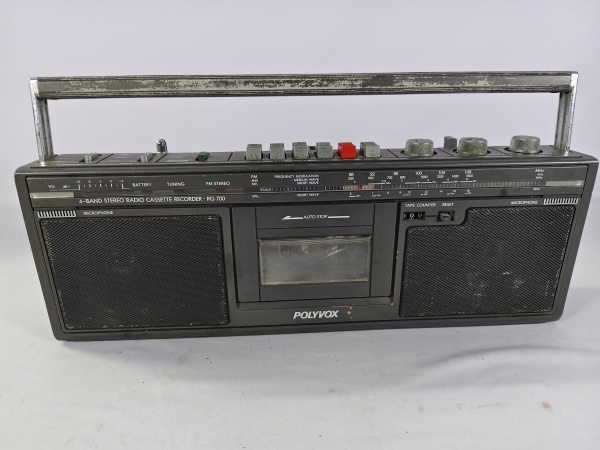 • Antigo rádio gravador cassete vintage Polyvox RG700, da década de 80, toca AM/FM/SW possuí função "Auto Stop", item não testado