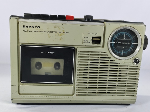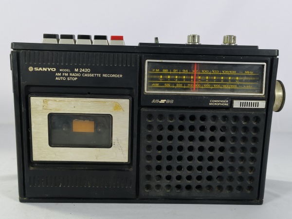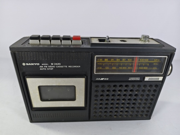 • Antigo rádio gravador de fita cassete vintage da marca Sanyo, modelo M2420, toca fita cassete e AM/FM, possuí "Auto-Stop", item da década de 80, item não testado