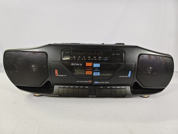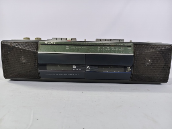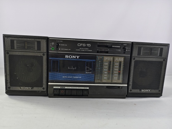 • Antigo rádio boombox SONY CFS-15 da década de 80, toca rádio AM/FM e reprodutor/gravador de fita cassete com caixa de som acoplada, item liga ao por na tomada, porém não testamos suas funcionalidades