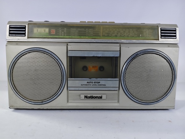 • Antigo rádio Cassete Boombox Vintage da marca National Panasonic, modelo RX-4954F, toca rádio AM/FM e reprodutor/gravador de fitas cassete com função "auto-stop", item não testado