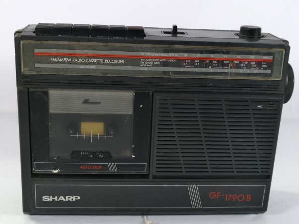 • Antigo rádio gravador cassete Sharp GF-1790B, toca rádio AM/FM e SW com toca fita integrado, da década de 80, item liga ao por na tomada porém não testamos suas funcionalidades