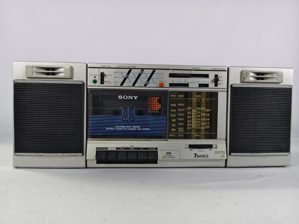 • Antigo rádio gravador estéreo boombox vintage da marca SONY, modelo CFS-3000SBS, toca faixas FM, ondas médias MW e ondas curtas SW e fita cassete e equalizador gráfico, item liga ao  por na tomada porém não testamos suas funcionalidades