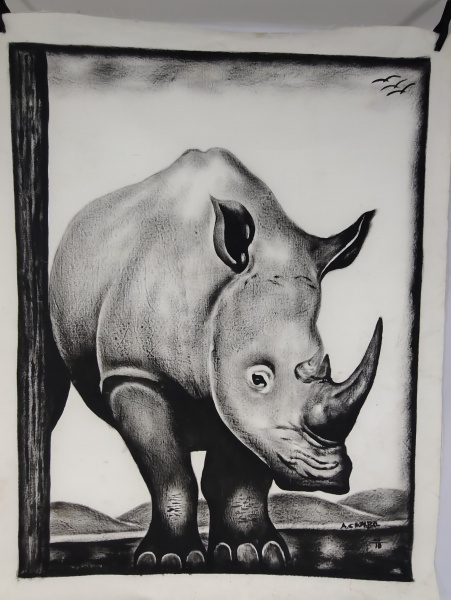 • Pintura a óleo em tela, South africa big five Claude Stone, med. 60 cm X 90 cm