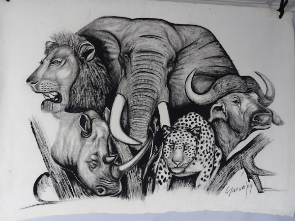 • Pintura óleo em tela South Africa Big Five  Yvette Mey, Med.105 cm X 75 cm