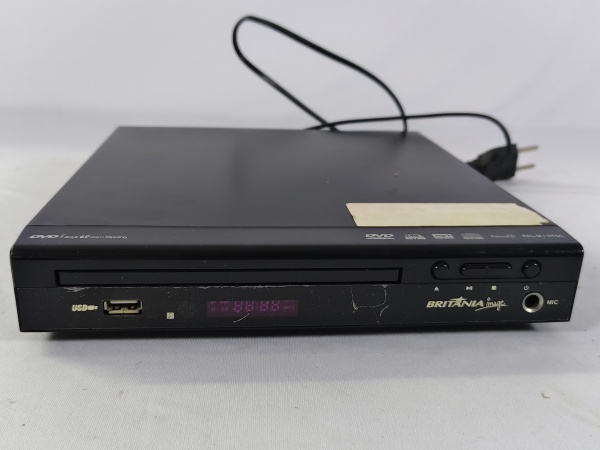 • DVD Player da marca Britânia de 100V/220V, ao por na tomada o item liga porém não testamos suas funcionalidades