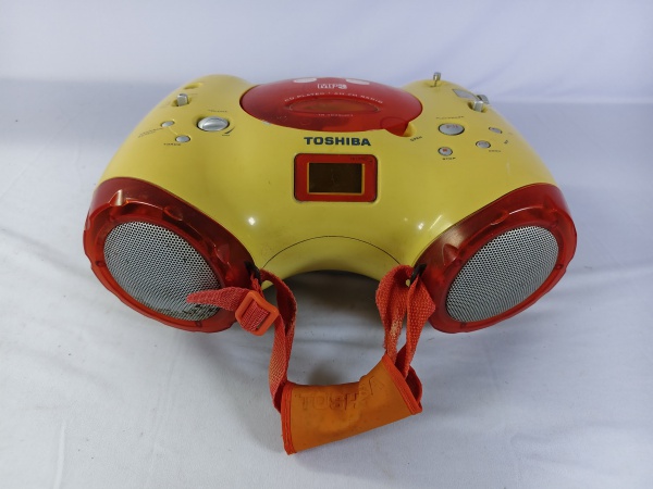• Rádio CD player portátil AM/FM e CDs, da marca Toshiba anos 2000, o item liga ao por na tomada porém não testamos suas funcionalidades