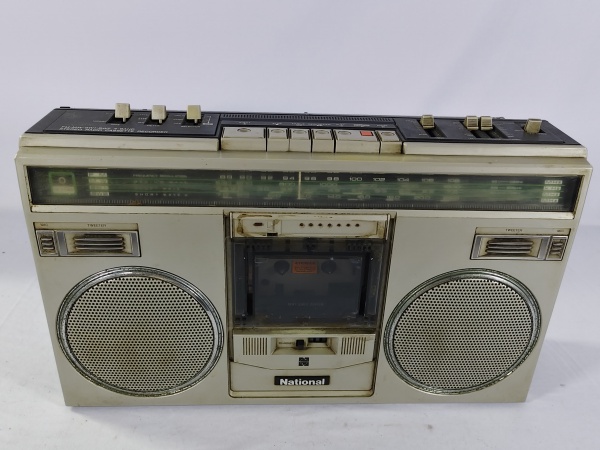 • Antigo rádio gravador vintage da década de 70, da marca National Panasonic modelo RX-5104 F, toca fita cassete e rádio AM/FM, item ao por na tomada liga, porém não testamos suas funcionalidades
