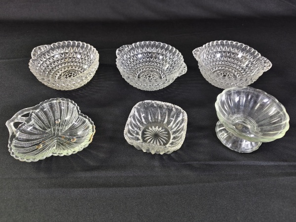 • Seis pequenos recipiente / tigelas de vidro com formas e estampas diferentes