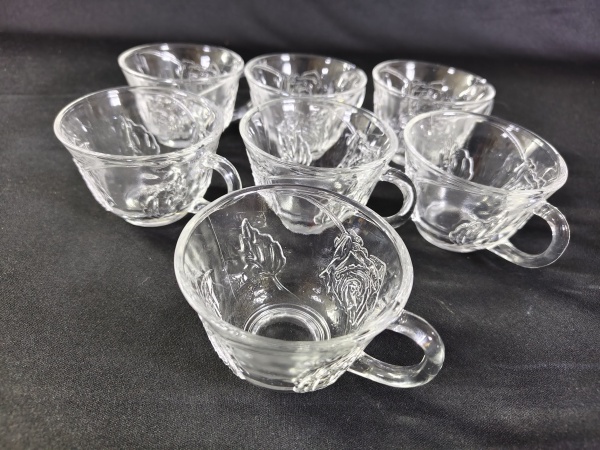 • Conjunto de xícaras de cristais/ vidro com alto relevo floral que fazem conjunto com poncheira.