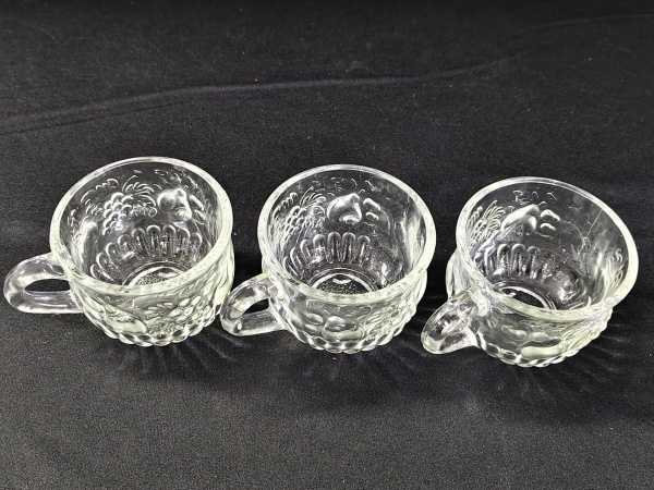 • Conjunto com três xícaras para poncheira de cristal/ vidro.