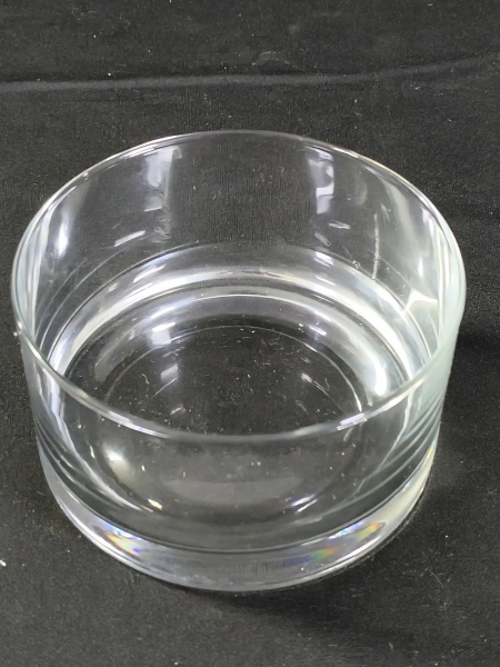 • Vaso redondo de cristais/ vidro transparente, medindo aproximadamente 6cm.