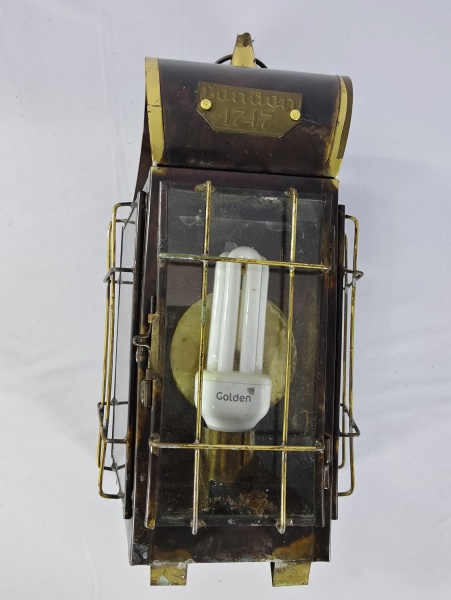 • Antiga lanterna de latão estilo "London 1747" em marrom escuro e detalhes em dourado com aproximadamente 35cm