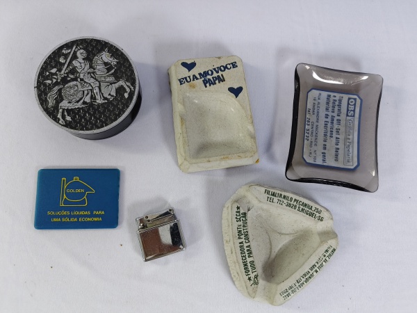 • Lote com cinzeiros, isqueiros e outros