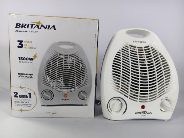 • Aquecedor 2 em 1 de 25cm, aquecedor e ventilador da marca Britania de 127V na caixa, funcionando