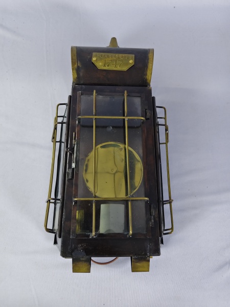 • Antiga lanterna de latão estilo "London 1747" em marrom escuro e detalhes em dourado com aproximadamente 35cm