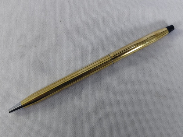 • Conjunto de caneca esferográfica e lapiseira da marca CROSS, modelo Classic Century, folheada a ouro