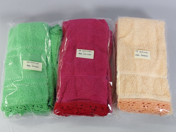 • Seis toalhas nas cores verde, rosa e laranja bordadas, para lavabo em perfeito estado