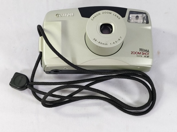 • Câmera fotográfica analógica compacta Canom Prima Zoom Shot 38-60mm flash automático. (câmeras de coleção adquirida por nós, não testada após aquisição).